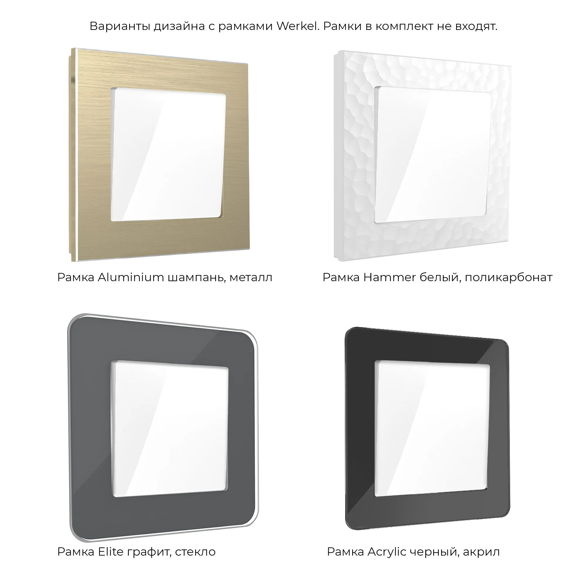 🔹 Полная совместимость с рамками Werkel — легко комбинируется с любыми рамками бренда, позволяя создать единый дизайнерский стиль всей электроустановки.